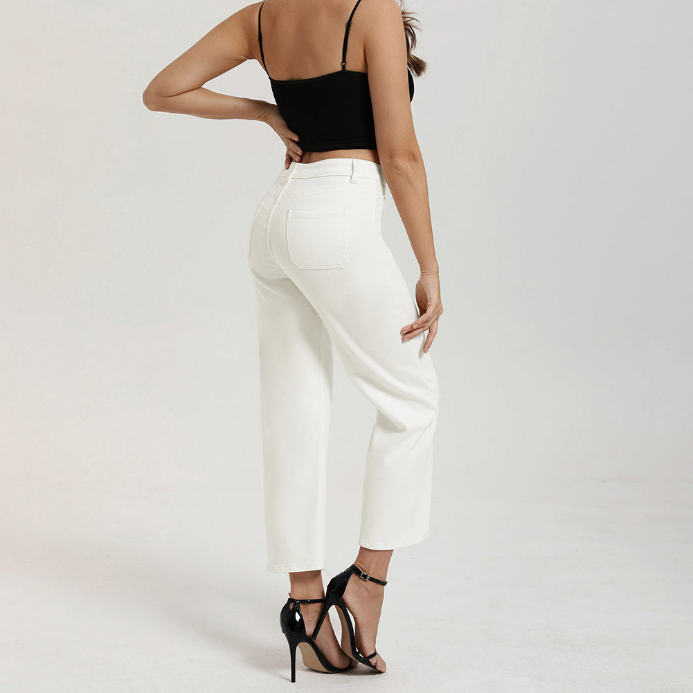 Elevate your everyday wardrobe with these versatile straight-leg jeans from Belle Poque. Crafted with a mid-rise fit and stretchy denim fabric, they offer comfortable all-day wear without compromising on style. The wide-leg silhouette creates a flattering, modern aesthetic that works seamlessly from casual outings to relaxed office settings. Functional front pockets provide practical storage, while the quality construction ensures durability through countless wears. Perfect for those seeking a timeless denim staple that balances comfort with contemporary design.
