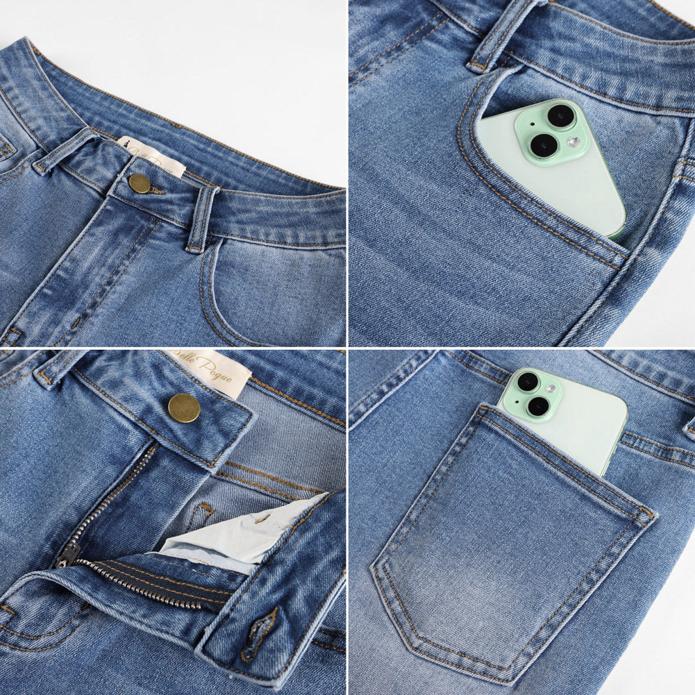 2026 Women's Denim Skirt Knee Length Jean Skirt with Pockets