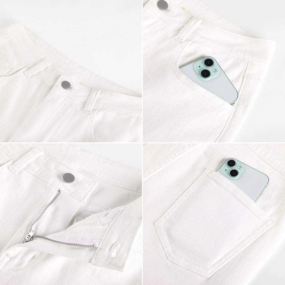 Wide Leg Jeans Button Decorated Casual Stretchy Demin Pants with Pockets