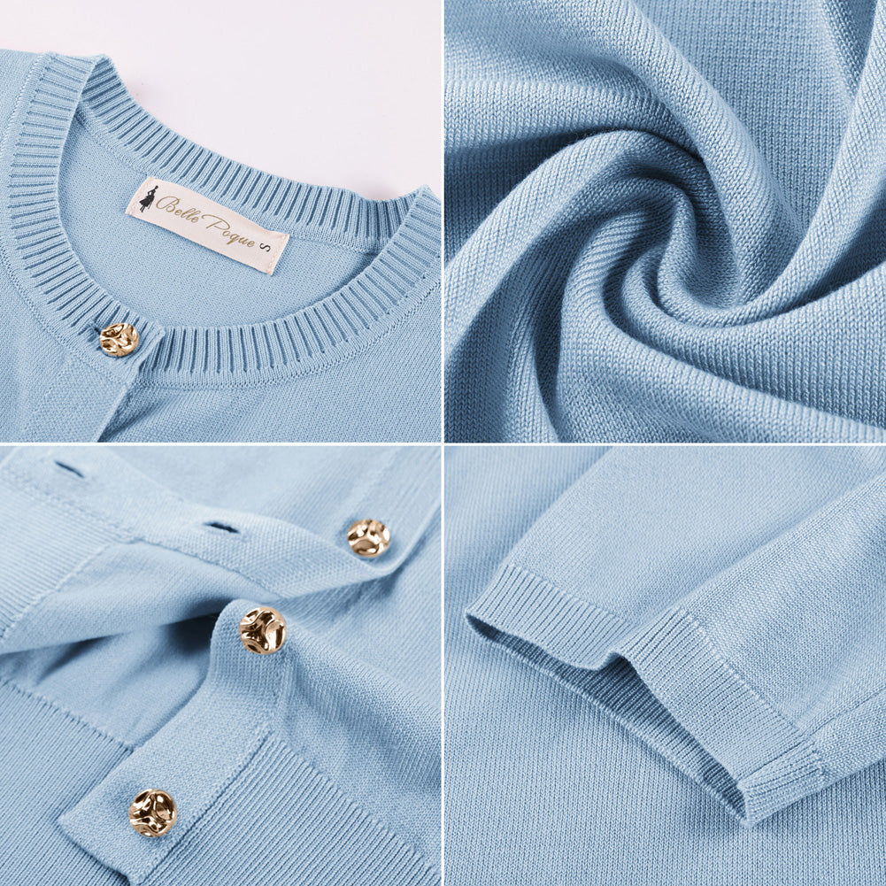 Belle Poque Women Short Sleeve Cardigan Sweater Lightweight Crewneck Button Up Summer Cardigan
